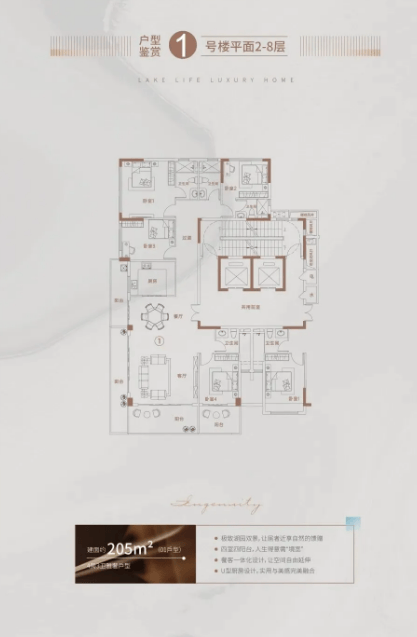 142㎡3+1 房 2 卫:湖园双景美宅,搭配休漫步道、健身平台等。