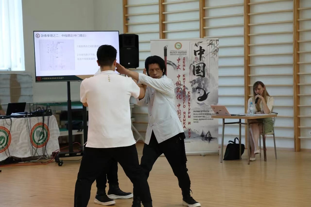 弗拉基米爾•克利諾弗致辭感謝中國文旅部中外文化核心、明斯克中國文化核心和白俄羅斯國立體育大學孔子學院對本次活動的鼎力援助,國家非遺春代表團成員出色的開場表演,鄭祖傑老師從科學理論到實用以及哲學的全新等維度深切闡述了其對春武學的獨特理解。